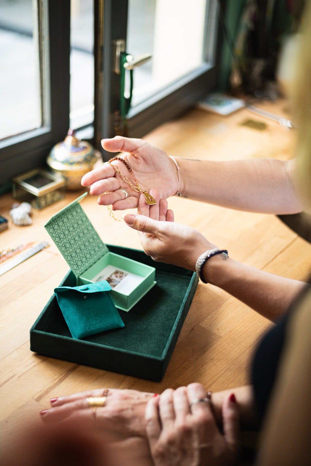 Tous les éléments rejoignent ensuite l’atelier LAURIE L., et la créatrice finalise l’assemblage de chaque bijou selon vos souhaits de commande.